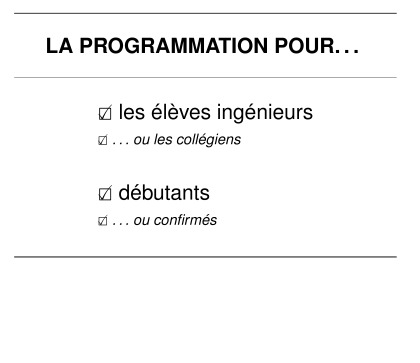 ![]() PREMIERS PAS HTML5 | ![]() Principes de programmation | ![]() Programmation Assembleur x86 32 et 64 bits Linux. | ![]() Programmer éleves ingénieurs |
